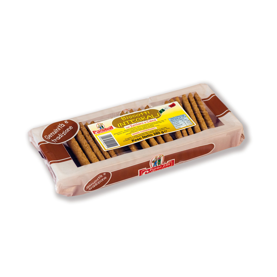 Wholemeal biscuits with butter, enriched with 20% sugar cane, without preservatives. High nutritional value. Ideal for breakfast and after intensive physical exercise.